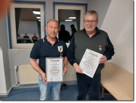 Den 10-jährigen Orden erhalten die Kameraden Franz-Josef Vogt und Michael Wolke und